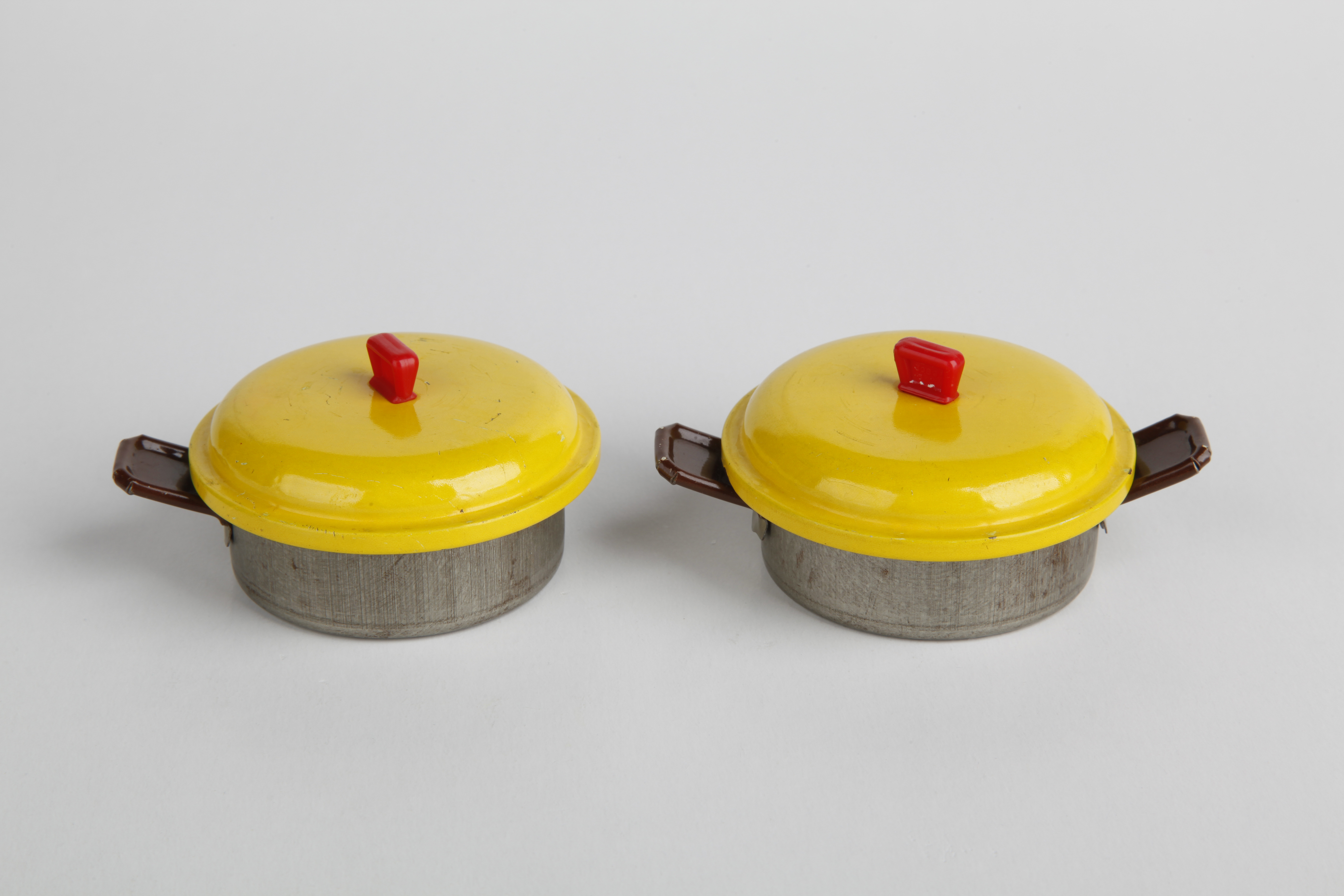 Hliníkový pekáč 2x, se žlutou pokličkou.