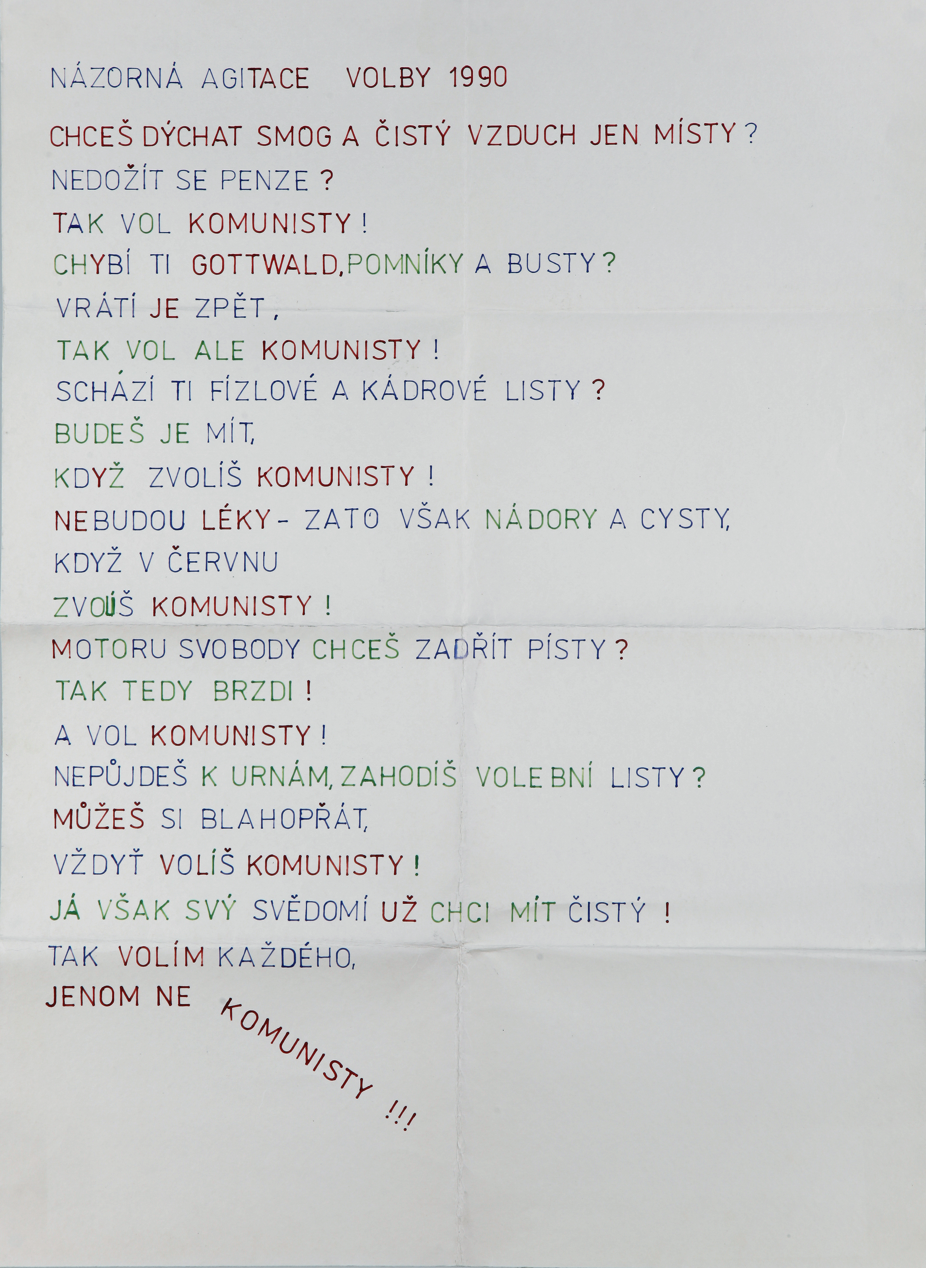 Ručně malovaný plakát "Názorná agitace volby 1990".
