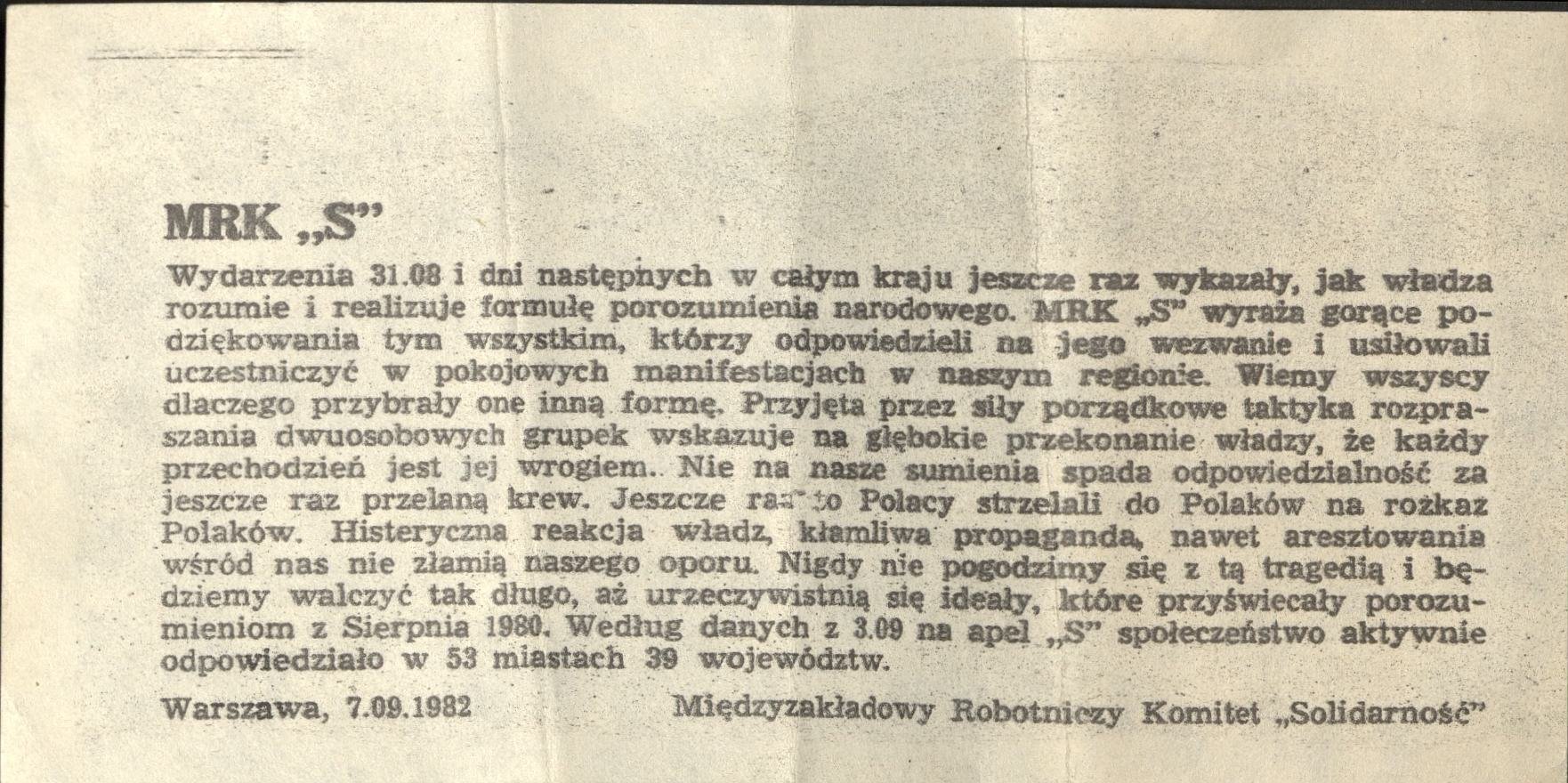 Geolocation (spatial coverage): Time scope (temporal coverage): Description:Ulotka MRK "S" dotycząca łamania postanowień z Sierpnia 1980 przez ówczesną władzę