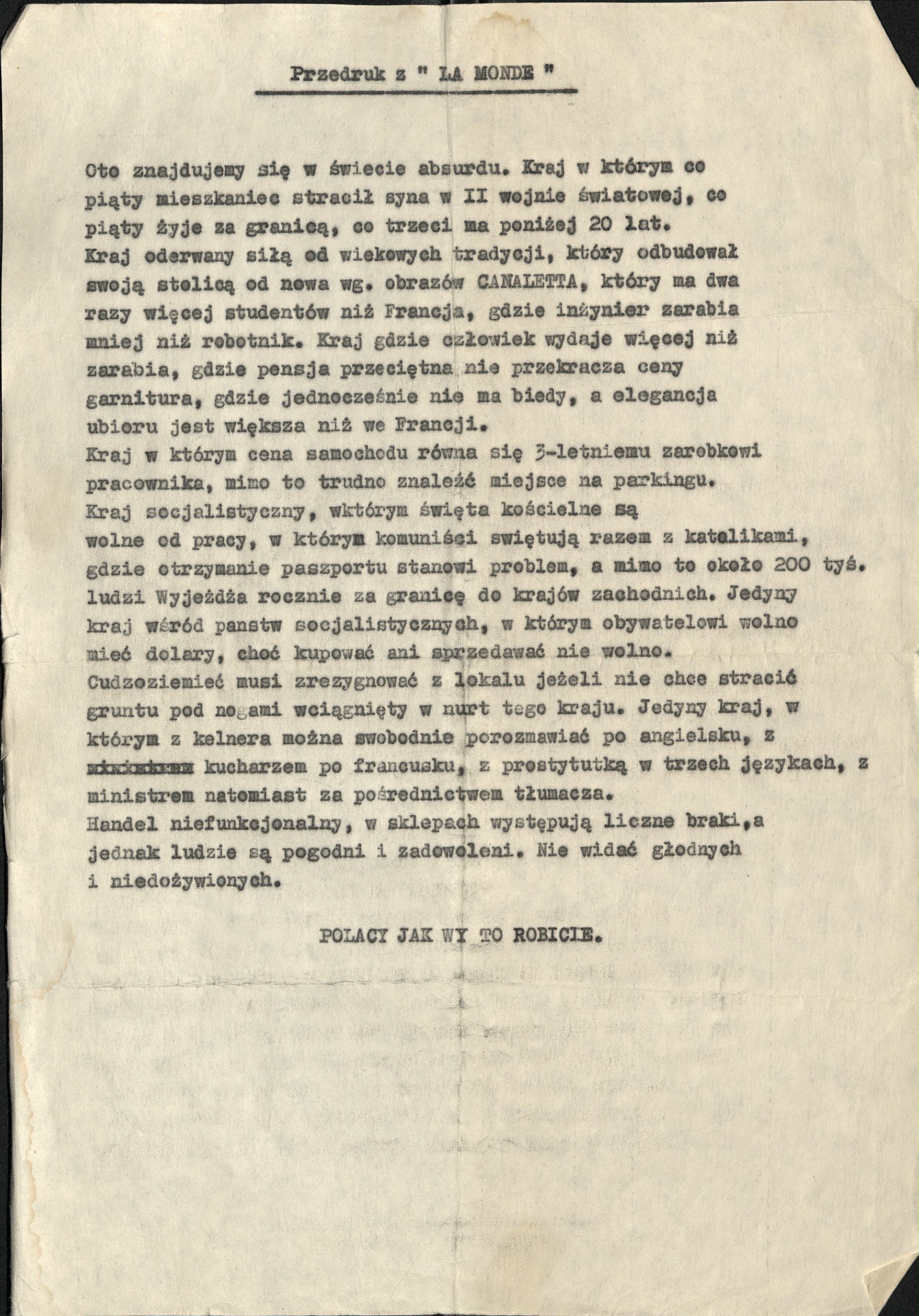 Przedruk z francuskiej z gazety "La Monde" o absurdalności kraju, w którym żyją Polacy