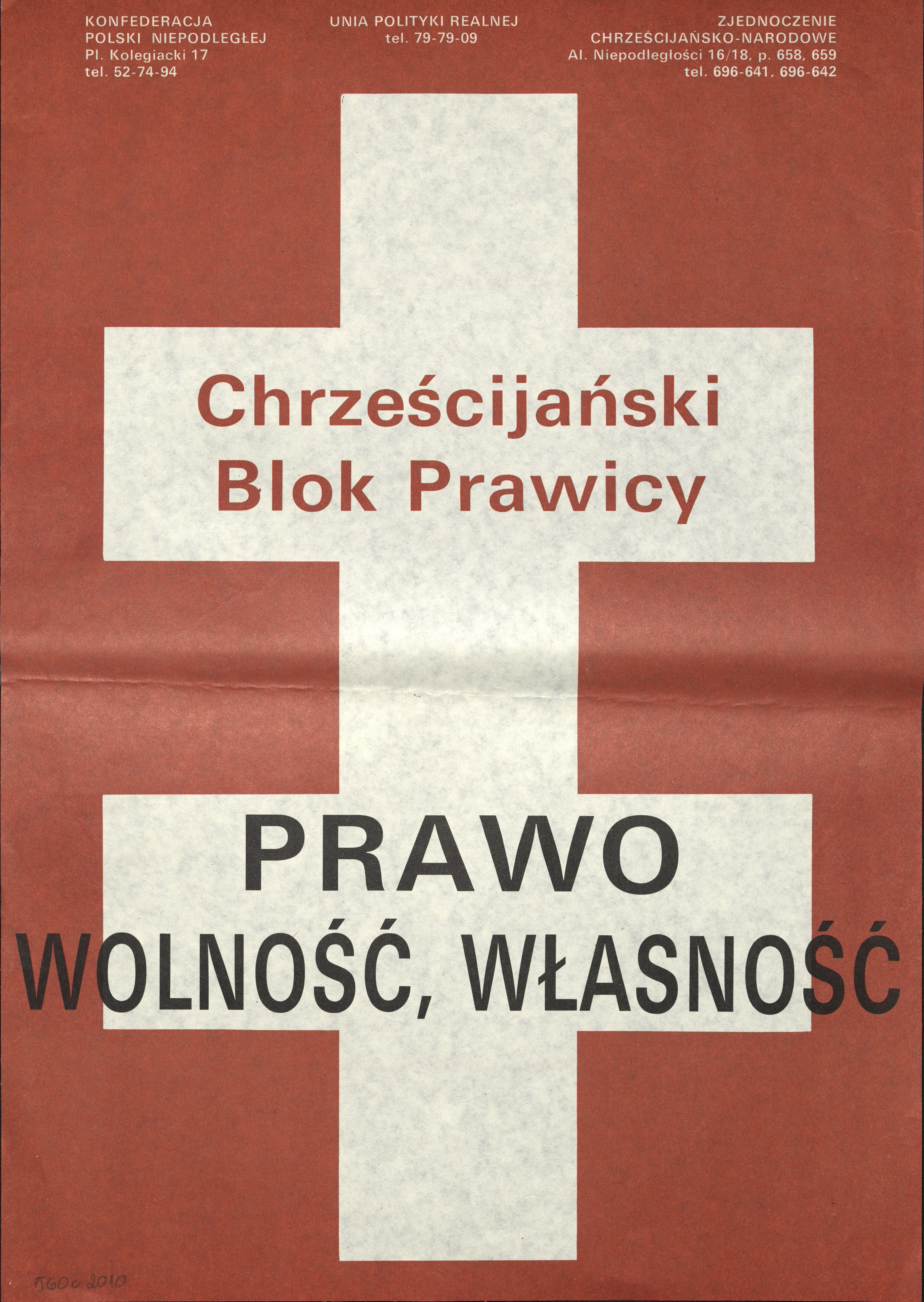 Plakat Wyborczy ChBP z hasłem: "Prawo, Wolność, Własność"