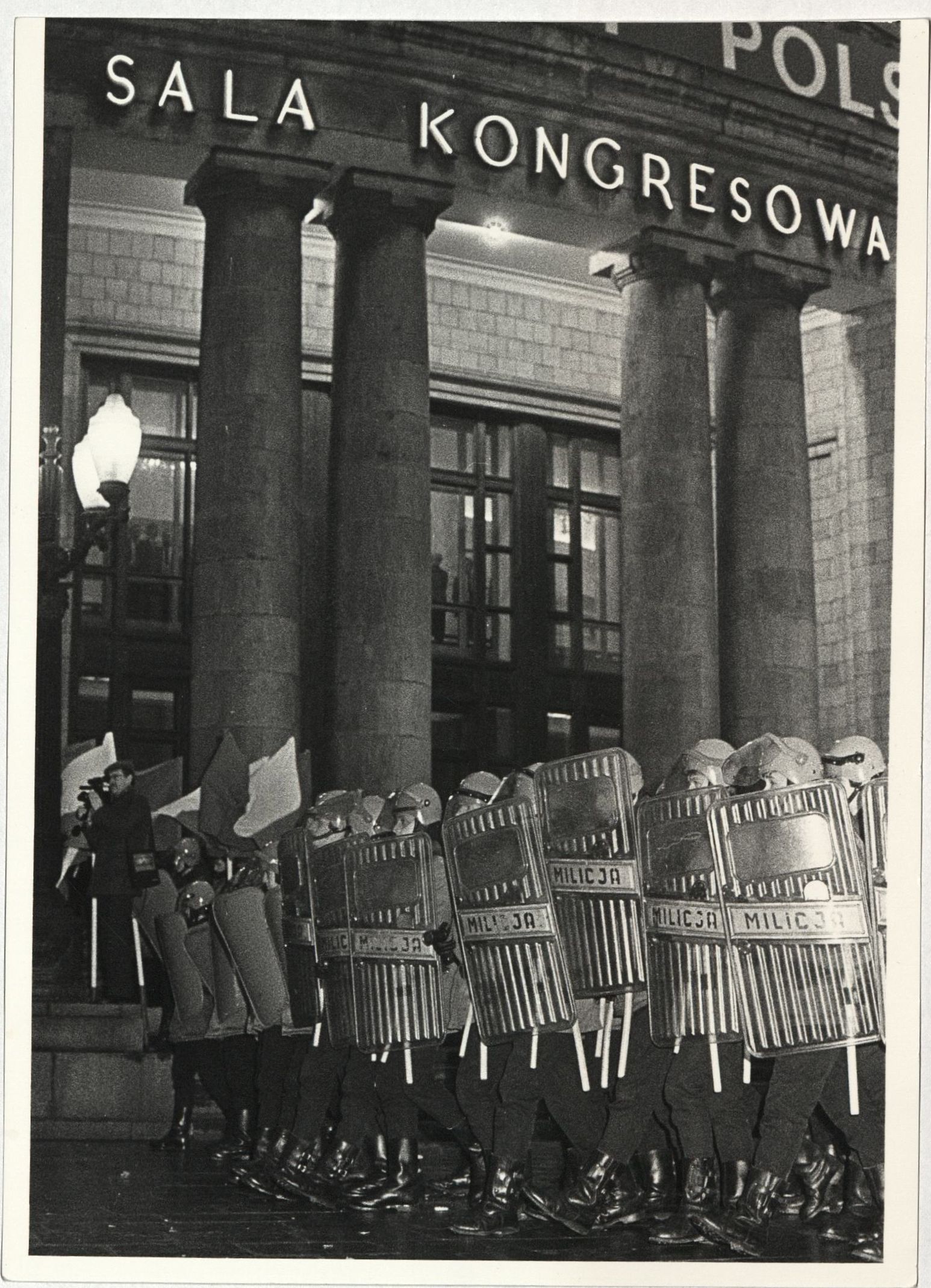 Lokaliseerimine (koht kaardil): Aeg (ajavahemik): Kirjeldus:Fotografia ukazuje kordon policji ochraniający ostatni zjazd PZPR