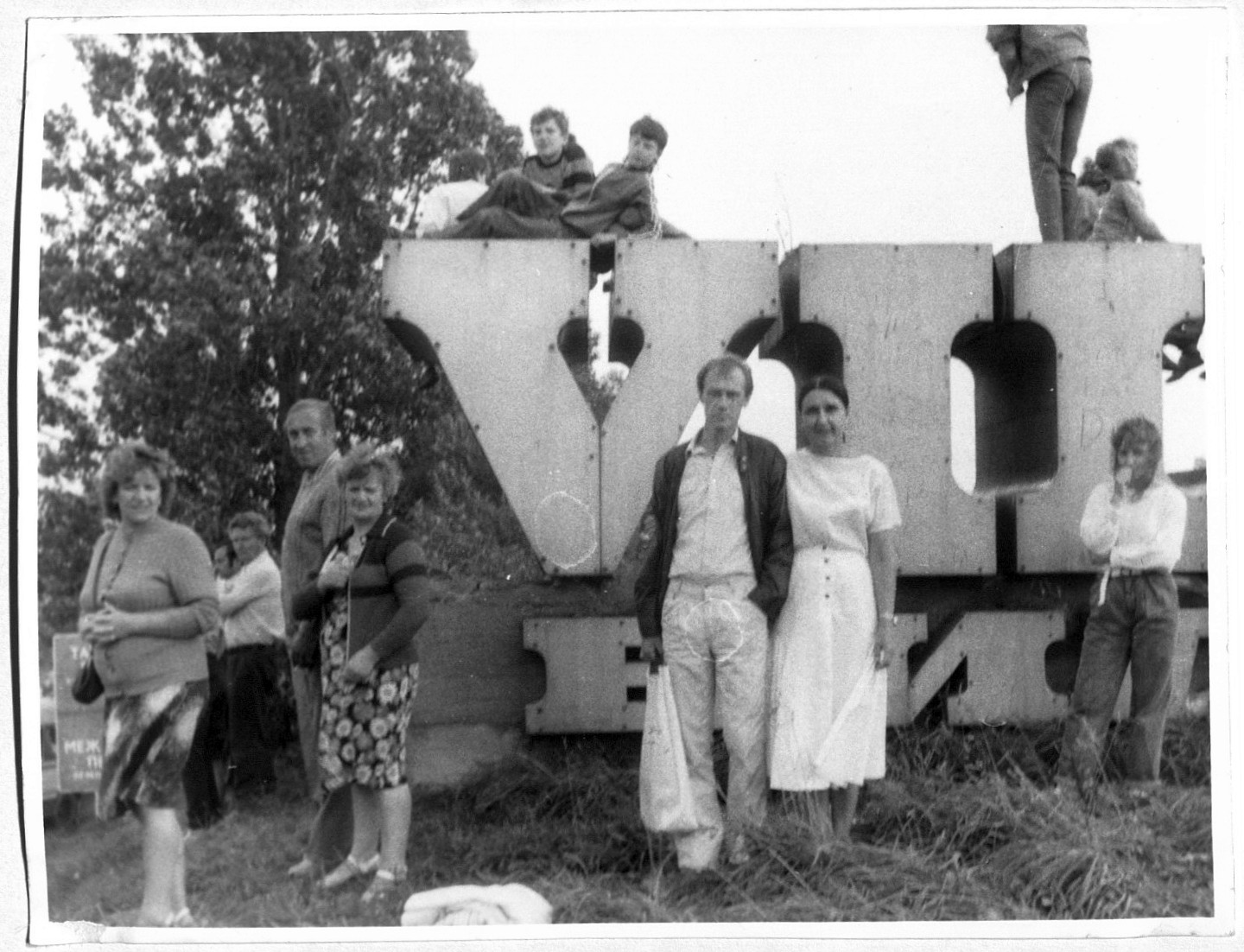 Baltijos kelias. Prie užrašo „Vilnius“ Ukmergės plente. Pasibaigus Baltijos kelio laikui.