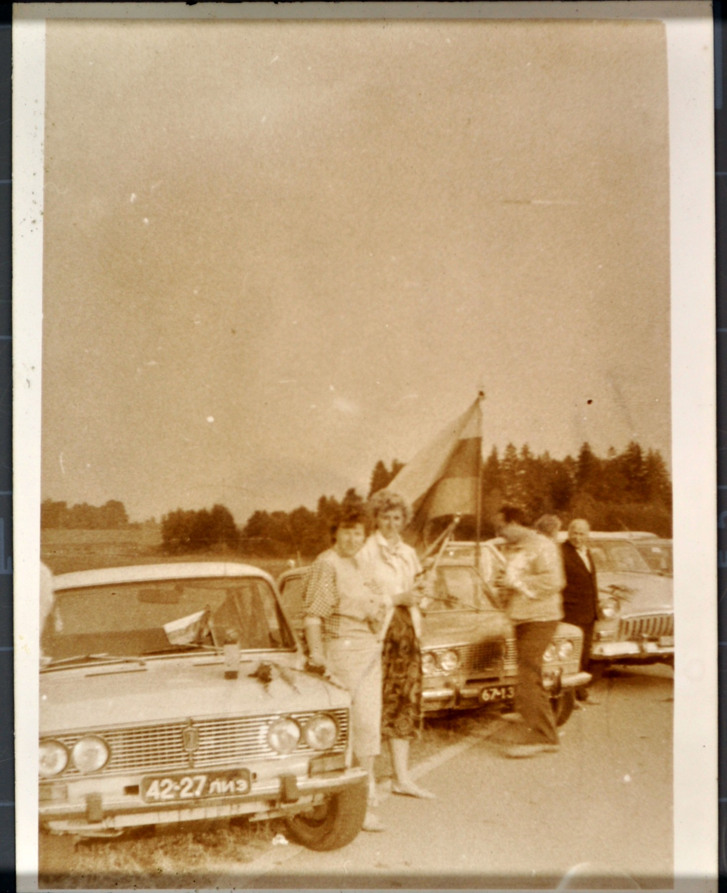 V. Aleksienė su šeima ką tik atvyko su žiguliuku į Baltijos kelią.