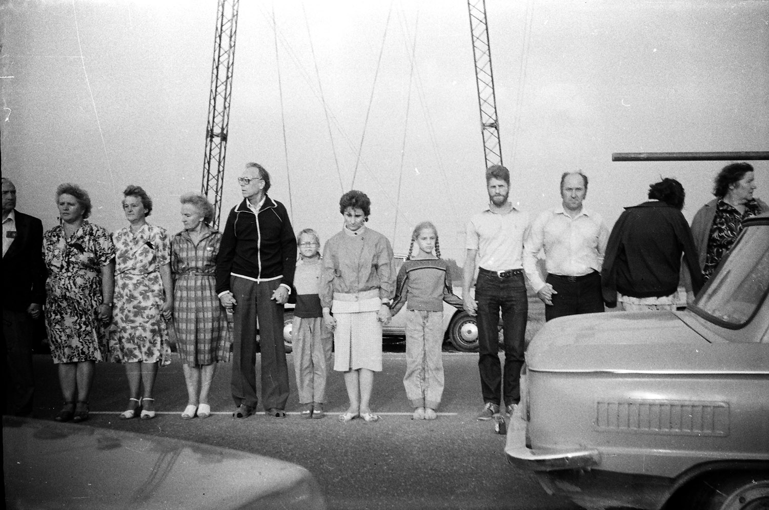 Uldis Pinka ar ģimeni Baltijas ceļā uz Rīgas-Bauskas šosejas pie Ķekavas.