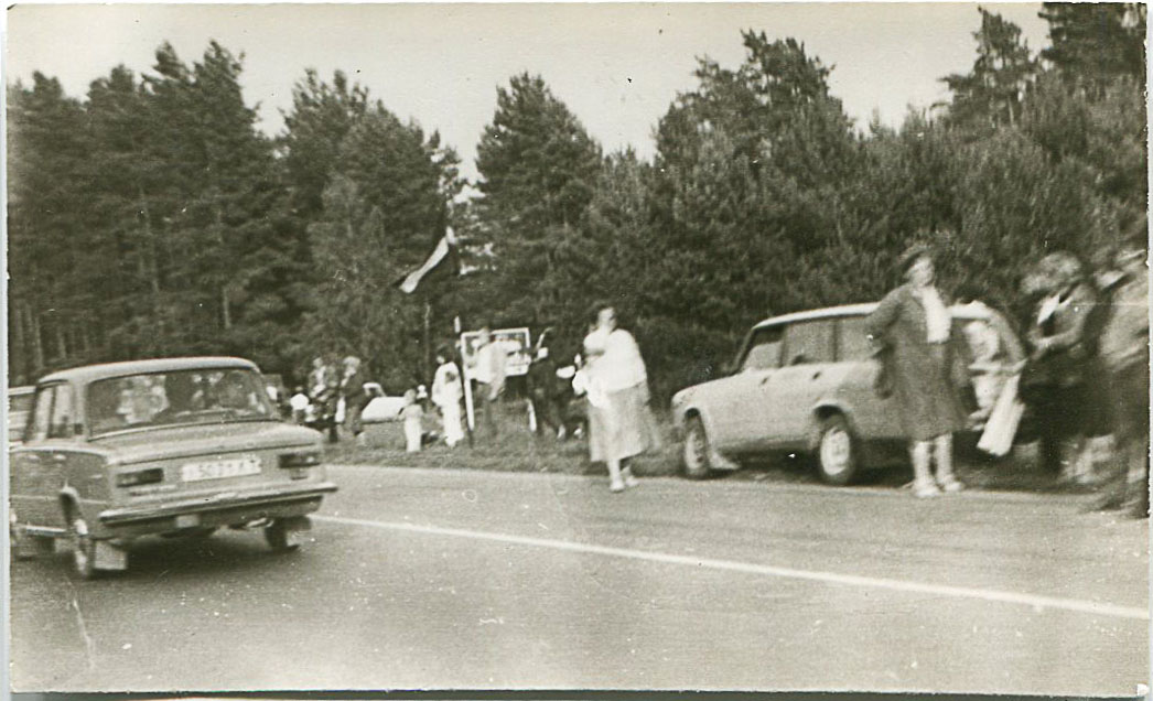 Baltijas ceļa uz Rīgas-Pleskavas šosejas (tagad Vidzemes šosejas) pie Garkalnes fotogrāfija. Šajā vietā Baltijas ceļā piedalījās Ruta Zeltiņa.