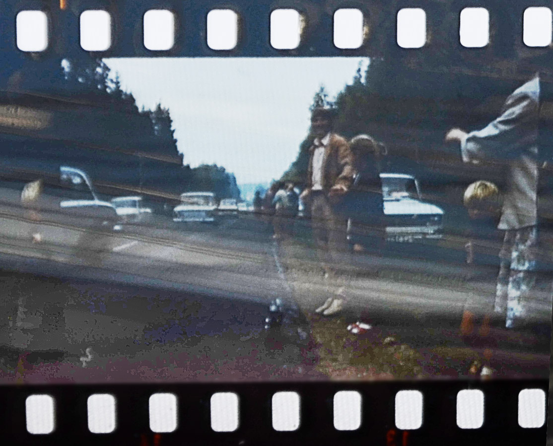 Baltijas ceļa dalībnieka Gunta Grīnšteina diapozitīvs no Baltijas ceļa pie Kocēniem.