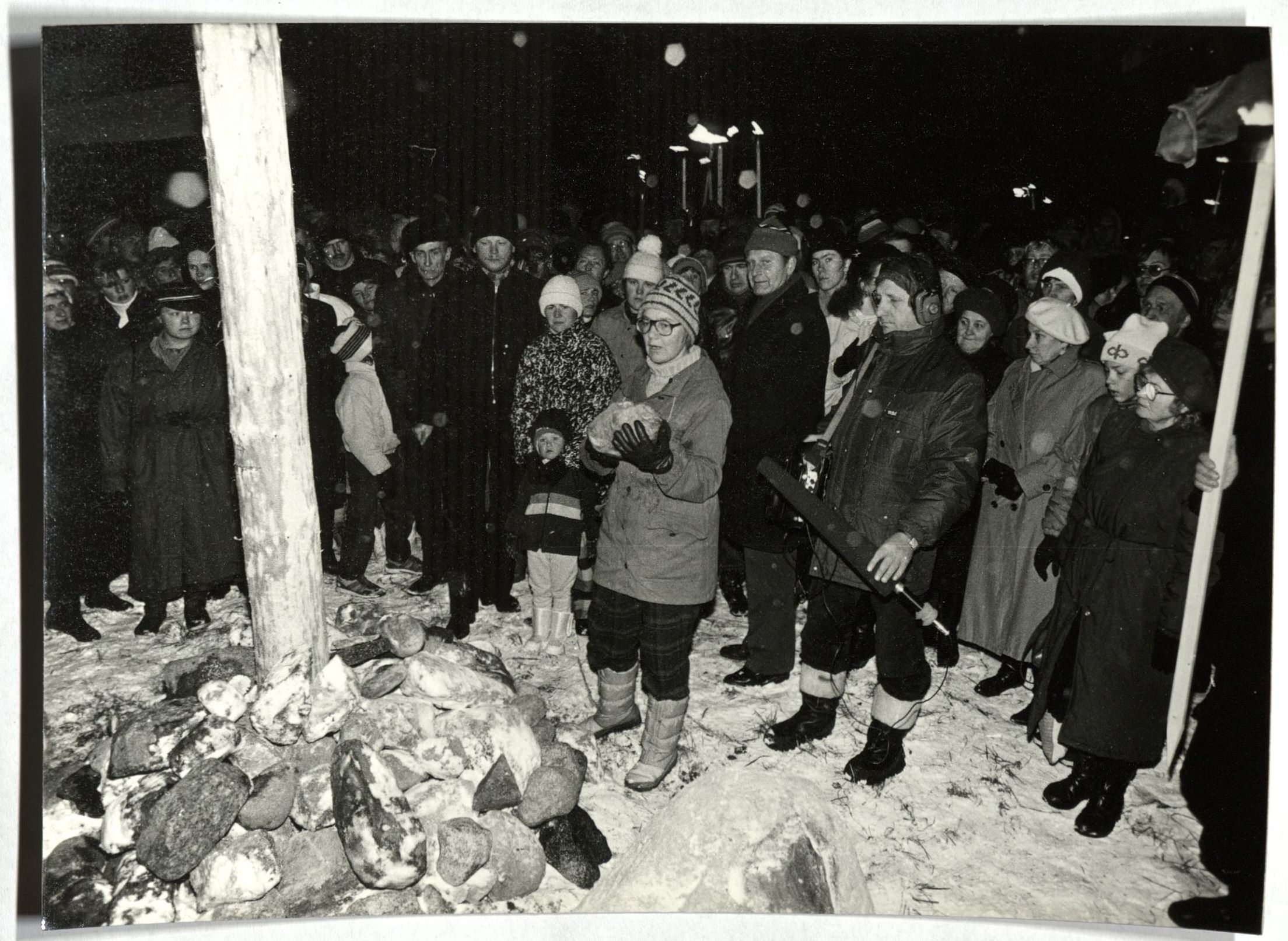 1988. aastal Pilistveres risti püstitamine ja selle tähistamine. Kivide panek risti püsti hoidmiseks.