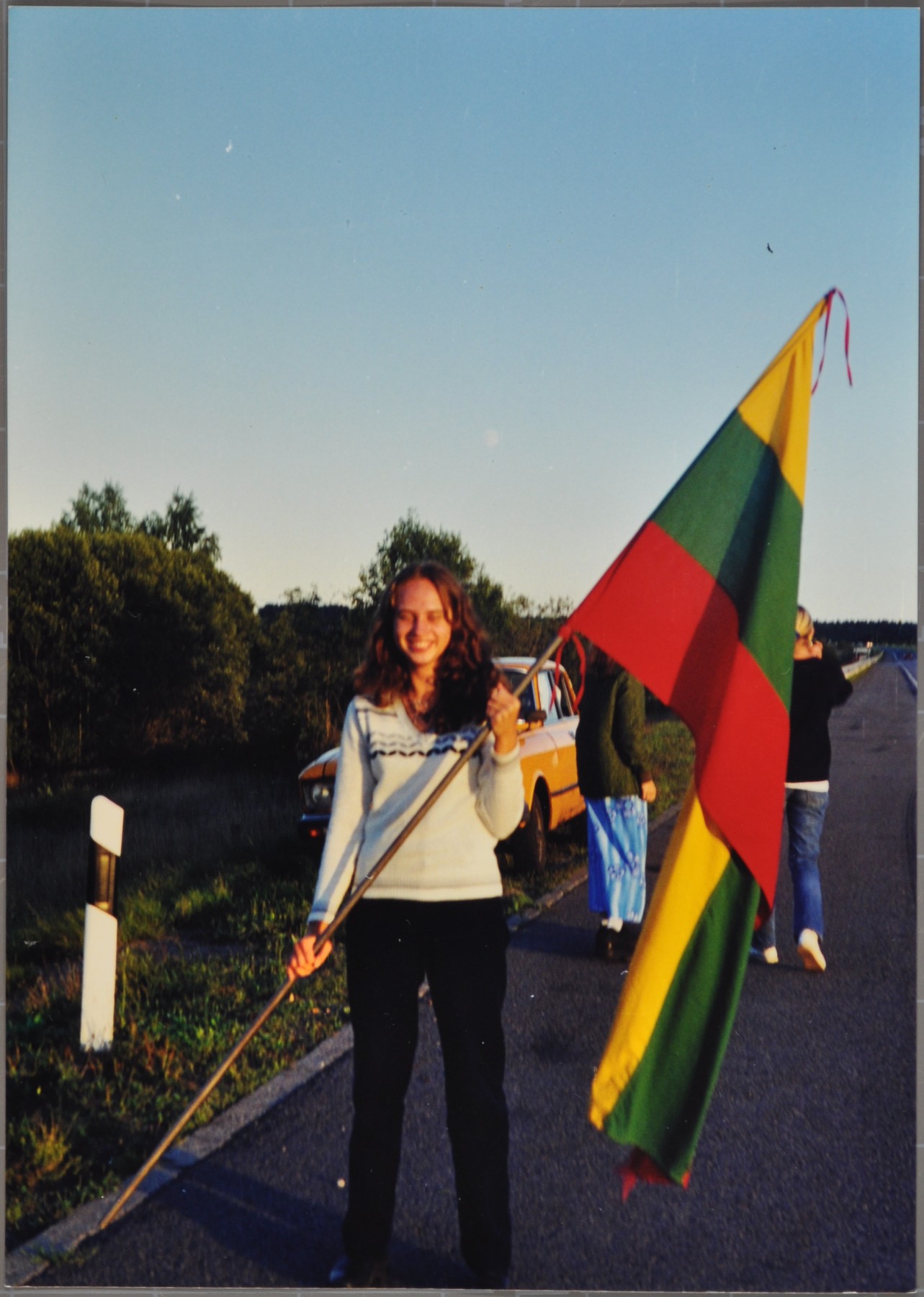 1999 m. Baltijos kelias. Nuotraukoje Gabija su Lietuvos vėliava.
